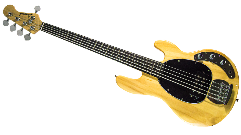 Bajo eléctrico de 5 cuerdas y 2 pastillas.